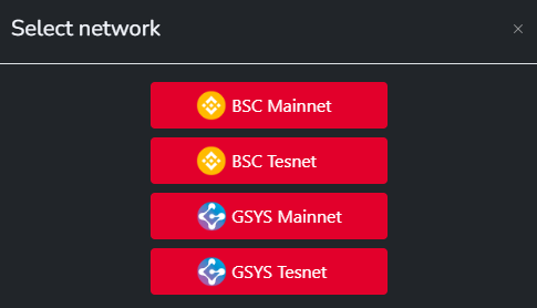Once the button is pressed, a network selection window will appear, allowing you to choose between Testnet (for testing) and Mainnet (production) networks.