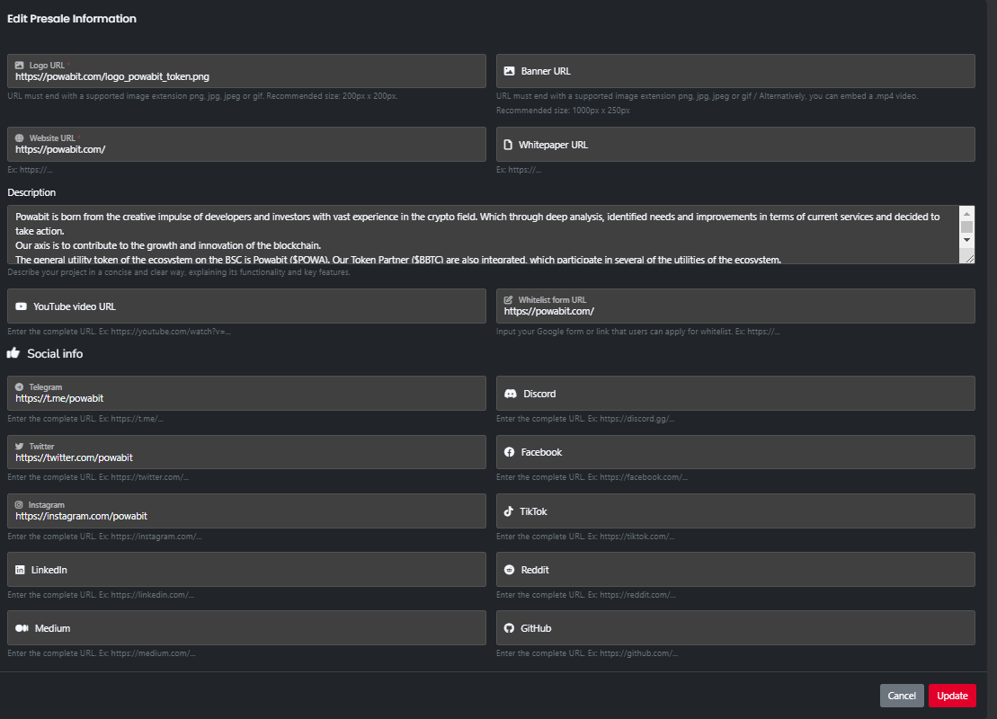 # Update Presale Info